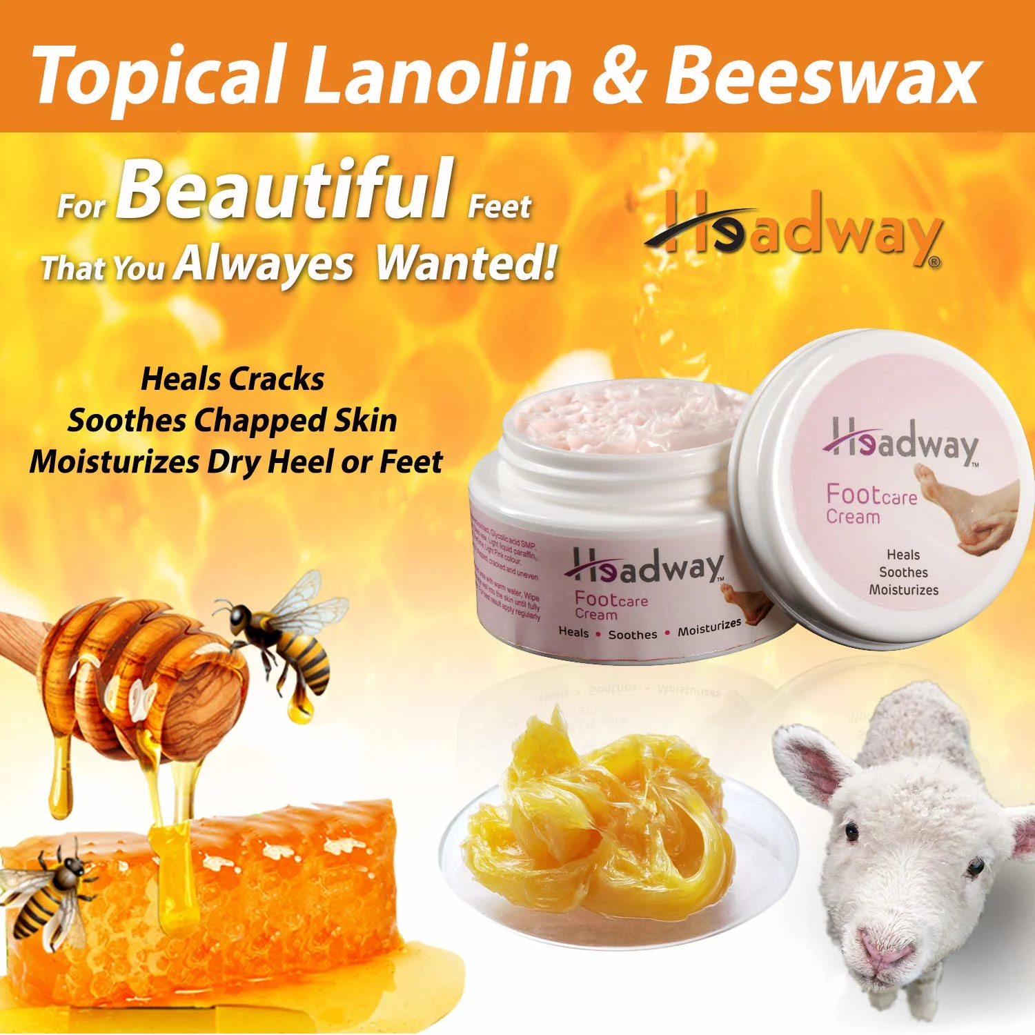 Restore softness and comfort to your feet with Headway Foot Care Cream, specially formulated to repair cracked heels, dry skin, and rough feet. Enriched with Lanolin and Bees Wax, this intensive moisturizing foot cream deeply nourishes and protects dry, chapped, and painful heels.